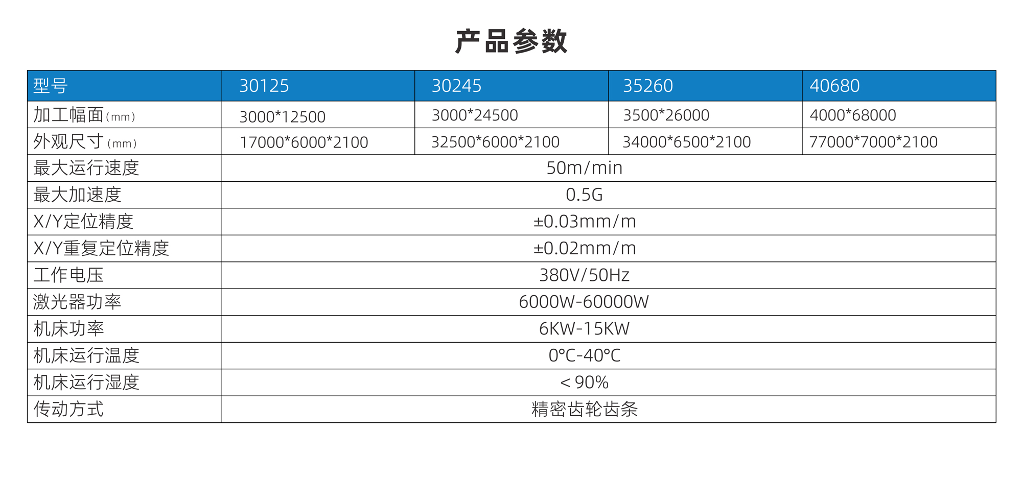 | 加工幅面(mm) | 3000*12500 | 3000*24500 | 3500*26000 | @4000*68000 |